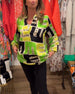 Farverig top med snøre