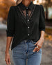 SPECIFIKATIONER Top type: Bluser Stil: Elegant Materiale: Polyester Lejlighed: Daglig,Fest Halsudskæring: V-udskæring Mønstertype: Ensfarvet Ærmetype: Sommerfugle-ærmer Ærmelængde: Ni-punkts-ærmer Pasform: Almindelig Sæson/årstid: Forår,Efterår Detaljer: Lynlås Pakken inkluderer: 1 x Bluse STØRRELSESTABEL (cm) Størrelse Buste Længde S 97 6...