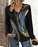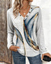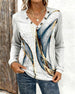 Trykt Casual Top Med V-Hals Og Lange Ærmer