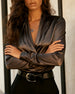 Top Med Draperet Krave I Fløjl Med Pailletter