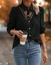 SPECIFIKATIONER Top type: Bluser Stil: Afslappet Materiale: Bomuldsblanding,Snøre Lejlighed: Daglig Halsudskæring: Revers Ærmetype: Puf-ærmer Ærmelængde: Langærmet Pasform: Almindelig Sæson/årstid: Forår,Efterår Detaljer: Patchwork,Rynket Pakken inkluderer: 1 x Bluse STØRRELSESTABEL (cm) Størrelse Buste Længde S 97 65 M 101 66.5 L 105 ...
