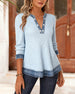 SPECIFIKATIONER Top type: Bluser Stil: Afslappet Materiale: Bomuldsblanding Lejlighed: Daglig Halsudskæring: Krave Ærmetype: Drop Shoulder Ærmelængde: Langærmet Pasform: Almindelig Sæson/årstid: Forår,Efterår,Vinter Detaljer: Patchwork Pakken inkluderer: 1 x Bluse STØRRELSESTABEL (cm) Størrelse Buste Længde S 97 65 M 101 66.5 L 105 68 ...