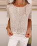 SPECIFIKATIONER Top type: Bluser Stil: Afslappet Materiale: Bomuldsblanding Lejlighed: Daglig Halsudskæring: Rund hals Mønstertype: Pailletter Ærmetype: Almindeligt ærme Ærmelængde: Kortærmet Pasform: Almindelig Sæson/årstid: Sommer Pakken inkluderer: Bluse STØRRELSESTABEL (cm) Størrelse Buste Længde S 95 65 M 100 66.5 L 105 68 ...