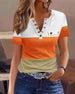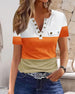 SPECIFIKATIONER Top type: Bluser Stil: Afslappet Materiale: Bomuldsblanding Lejlighed: Daglig Halsudskæring: V-udskæring Mønstertype: Farveblok Ærmetype: Almindeligt ærme Ærmelængde: Kortærmet Pasform: Almindelig Sæson/årstid: Sommer Detaljer: Knapper Pakken inkluderer: 1 x Bluse STØRRELSESTABEL (cm) Størrelse Buste Længde S 95 65 M...