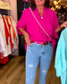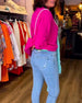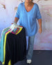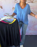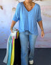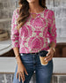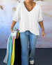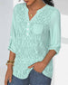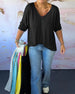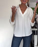 Casual ensfarvet bluse med V-udskæring og trekvarte ærme