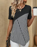 SPECIFIKATIONER Top type: Bluser Stil: Afslappet Materiale: Bomuldsblanding Lejlighed: Daglig Halsudskæring: Rund hals Mønstertype: Stribet,Farveblok Ærmetype: Almindeligt ærme Ærmelængde: Kortærmet Pasform: Almindelig Sæson/årstid: Sommer Pakken inkluderer: 1 x Bluse STØRRELSESTABEL (cm) Størrelse Buste Længde S 95 68 M 100 69.5 L 105...