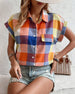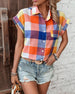 SPECIFIKATIONER Top type: Skjorte Stil: Afslappet, Forretning/Business Materiale: Bomuldsblanding Lejlighed: Daglig, Arbejde Halsudskæring: Revers Mønstertype: Ternet Ærmetype: Flagermuse-ærmer Ærmelængde: Kortærmet Pasform: Almindelig Sæson/årstid: Sommer Detaljer: Knapper Pakken inkluderer: Skjorte STØRRELSESTABEL (cm) Størrelse Buste...
