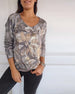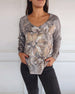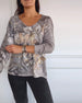 SPECIFIKATIONER Top type: Bluser Stil: Chic Materiale: Bomuldsblanding Lejlighed: Daglig Halsudskæring: V-udskæring Mønstertype: Tryk Ærmetype: Almindeligt ærme Ærmelængde: Langærmet Pasform: Almindelig Sæson/årstid: Forår, Sommer Pakken inkluderer: Bluse STØRRELSESTABEL (cm) Størrelse Buste Længde S 95 65 M 100 66.5 L 105 68 XL...