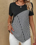 SPECIFIKATIONER Top type: Bluser Stil: Afslappet Materiale: Spandex,Polyester Lejlighed: Daglig Halsudskæring: Rund hals Mønstertype: Stribet Ærmetype: Almindeligt ærme Ærmelængde: Halve ærmer Pasform: Almindelig Sæson/årstid: Sommer Detaljer: Patchwork Pakken inkluderer: 1 x Bluse STØRRELSESTABEL (cm) Størrelse Buste Før Efter Ærm...
