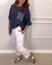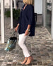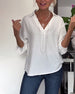 SPECIFIKATIONER Top type: Bluser Stil: Afslappet Materiale: Bomuldsblanding Lejlighed: Daglig Halsudskæring: V-udskæring Mønstertype: Ensfarvet Ærmetype: Almindeligt ærme Ærmelængde: Trekvartærmet Pasform: Almindelig Sæson/årstid: Forår, Sommer Detaljer: Knapper Pakken inkluderer: Bluse STØRRELSESTABEL (cm) Størrelse Buste Længde S 95...