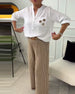 SPECIFIKATIONER Top type: Skjorte Stil: Elegant, Forretning/Business Materiale: Bomuldsblanding, Snøre Lejlighed: Daglig, Arbejde Halsudskæring: Revers Mønstertype: Ensfarvet Ærmetype: Almindeligt ærme Ærmelængde: Langærmet Pasform: Almindelig Sæson/årstid: Forår, Sommer, Efterår Detaljer: Patchwork, Knapper, Udhulende Pakken inkluderer: Skjo...