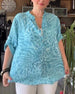 SPECIFIKATIONER Top type: Bluser Stil: Afslappet Materiale: Bomuldsblanding Lejlighed: Daglig Halsudskæring: Rund hals Mønstertype: Tryk Ærmetype: Almindeligt ærme Ærmelængde: Ni-punkts-ærmer Pasform: Almindelig Sæson/årstid: Forår, Sommer Detaljer: Udhulende Pakken inkluderer: Bluse STØRRELSESTABEL (cm) Størrelse Buste Længde S 95 65...