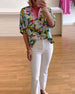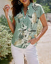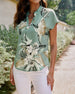 SPECIFIKATIONER Top type: Skjorte Stil: Afslappet Materiale: Bomuldsblanding Lejlighed: Daglig, Ferie Halsudskæring: V-udskæring Mønstertype: Blade Ærmetype: Almindeligt ærme Ærmelængde: Kortærmet Pasform: Almindelig Sæson/årstid: Forår, Sommer Detaljer: Knapper Pakken inkluderer: Skjorte STØRRELSESTABEL (cm) Størrelse Buste Længde S 95...