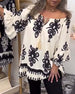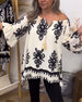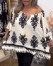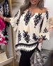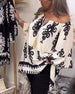 SPECIFIKATIONER Top type: Bluser Stil: Afslappet, Ferie, Chic Materiale: Bomuldsblanding Lejlighed: Daglig, Ferie Halsudskæring: Off-shoulder Mønstertype: Tryk Ærmetype: Pjuskærmer Ærmelængde: Trekvartærmet Pasform: Løs Sæson/årstid: Forår, Sommer Pakken inkluderer: Bluse STØRRELSESTABEL (cm) Størrelse Buste Længde S 95 68 M 100 69.5 L...