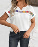 SPECIFIKATIONER Top type: Toppe Stil: Elegant, Forretning/Business Materiale: Bomuldsblanding Lejlighed: Daglig, Arbejde Halsudskæring: Rund hals Mønstertype: Ensfarvet Ærmetype: Pjuskærmer Ærmelængde: Halve ærmer Pasform: Almindelig Sæson/årstid: Forår, Sommer, Efterår Detaljer: Patchwork Pakken inkluderer: 1 x Top STØRRELSESTABEL (cm) Stør...