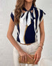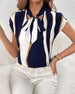 SPECIFIKATIONER Top type: Bluser Stil: Afslappet, Forretning/Business Materiale: 5% Spandex, 95% Polyester Lejlighed: Daglig, Arbejde Halsudskæring: Båndkrave Mønstertype: Farveblok Ærmetype: Flagermuse-ærmer Ærmelængde: Kortærmet Pasform: Almindelig Sæson/årstid: Forår, Sommer, Efterår Detaljer: Snøre op Pakken inkluderer: Bluse STØRRELS...