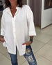 SPECIFIKATIONER Top type: Skjorte Stil: Afslappet, Forretning/Business Materiale: Bomuldsblanding Lejlighed: Daglig, Arbejde Halsudskæring: Revers Mønstertype: Ensfarvet Ærmetype: Drop Shoulder Ærmelængde: Trekvartærmet Pasform: Almindelig Sæson/årstid: Forår, Sommer, Efterår Detaljer: Knapper Pakken inkluderer: Skjorte STØRRELSESTABEL (cm...