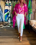 SPECIFIKATIONER Top type: Toppe Stil: Afslappet Materiale: Bomuldsblanding Lejlighed: Daglig Halsudskæring: Ståkrave Mønstertype: Tryk Ærmetype: Almindeligt ærme Ærmelængde: Ni-punkts-ærmer Pasform: Almindelig Sæson/årstid: Forår, Sommer Detaljer: Flænge Pakken inkluderer: 1 x Top STØRRELSESTABEL (cm) Størrelse Buste Længde S 95 68 ...