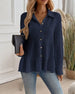 SPECIFIKATIONER Top type: Skjorte Stil: Afslappet Materiale: Bomuldsblanding Lejlighed: Daglig Halsudskæring: Revers Mønstertype: Ensfarvet Ærmetype: Almindeligt ærme Ærmelængde: Langærmet Pasform: Almindelig Sæson/årstid: Forår,Sommer,Efterår Detaljer: Spænde,Udhulende Pakken inkluderer: 1 x Skjorte STØRRELSESTABEL (cm) Størrelse Buste Læng...
