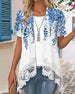 SPECIFIKATIONER Top type: Bluser Stil: Afslappet Materiale: Bomuldsblanding Lejlighed: Daglig Halsudskæring: Rund hals Mønstertype: Tryk Ærmetype: Almindeligt ærme Ærmelængde: Kortærmet Pasform: Almindelig Sæson/årstid: Forår,Sommer Detaljer: Uregelmæssig,To falske stykker Pakken inkluderer: 1 x Bluse STØRRELSESTABEL (cm) Størrelse Buste Læn...