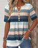 SPECIFIKATIONER Top type: Bluser Stil: Afslappet Materiale: Bomuldsblanding Lejlighed: Daglig Halsudskæring: V-udskæring Mønstertype: Stribet,Farveblok Ærmetype: Almindeligt ærme Ærmelængde: Kortærmet Pasform: Almindelig Sæson/årstid: Forår,Sommer Detaljer: Knapper,Rynket Pakken inkluderer: 1 x Bluse STØRRELSESTABEL (cm) Størrelse Buste Læng...