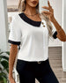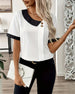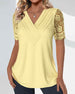 SPECIFIKATIONER Top type: Toppe Stil: Elegant Materiale: Bomuldsblanding, Snøre Lejlighed: Daglig Halsudskæring: V-udskæring Mønstertype: Ensfarvet Ærmetype: Almindeligt ærme Ærmelængde: Kortærmet Pasform: Almindelig Sæson/årstid: Forår, Sommer, Efterår Detaljer: Patchwork Pakken inkluderer: 1 x Top STØRRELSESTABEL (cm) Størrelse...