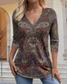 Bluse V-Hals Blonder Lanterneærmer Trykt