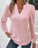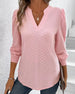 SPECIFIKATIONER Top type: Toppe Stil: Afslappet, Elegant Materiale: Bomuldsblanding Lejlighed: Daglig, Ferie, Arbejde Halsudskæring: V-udskæring Mønstertype: Ensfarvet Ærmelængde: Langærmet Pasform: Almindelig Sæson/årstid: Forår, Sommer, Efterår Detaljer: Rynket Pakken inkluderer: 1 x Top STØRRELSESTABEL (cm) Størrelse Buste Længde S...