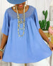 SPECIFIKATIONER Top type: Bluser Stil: Afslappet Materiale: Bomuldsblanding Lejlighed: Daglig Halsudskæring: V-udskæring Mønstertype: Tryk Ærmetype: Lanterneærmet Ærmelængde: Kortærmet Pasform: Almindelig Sæson/årstid: Forår,Sommer Detaljer: Patchwork,Snøre Pakken inkluderer: 1 x Bluse STØRRELSESTABEL (cm) Størrelse Buste Længde S 97 65 ...