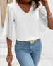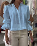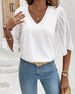 SPECIFIKATIONER Top type: Bluser Stil: Afslappet Materiale: Bomuldsblanding Lejlighed: Daglig Halsudskæring: V-udskæring Mønstertype: Ensfarvet Ærmetype: Vidærmet Ærmelængde: Trekvartærmet Pasform: Almindelig Sæson/årstid: Forår,Sommer Detaljer: Gennemsigtig Pakken inkluderer: 1 x Bluse STØRRELSESTABEL (cm) Størrelse Buste Længde S 97 65 ...
