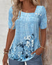 SPECIFIKATIONER Top type: Bluser Stil: Afslappet Materiale: Bomuldsblanding Lejlighed: Daglig Halsudskæring: Firkantet hals Mønstertype: Tryk Ærmetype: Almindeligt ærme Ærmelængde: Kortærmet Pasform: Almindelig Sæson/årstid: Forår,Sommer Detaljer: Patchwork,Uregelmæssig Pakken inkluderer: 1 x Bluse STØRRELSESTABEL (cm) Størrelse Buste Længde...