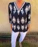 SPECIFIKATIONER Top type: Bluser Stil: Boho Materiale: Bomuldsblanding Lejlighed: Daglig,Ferie Halsudskæring: V-udskæring Mønstertype: Tribal-print Ærmetype: Almindeligt ærme Ærmelængde: Trekvartærmet Pasform: Almindelig Sæson/årstid: Forår,Sommer Pakken inkluderer: 1 x Bluse STØRRELSESTABEL (cm) Størrelse Buste Længde S 97 65 M 101 66.5...