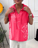 SPECIFIKATIONER Top type: Bluser Stil: Afslappet Materiale: Bomuldsblanding Lejlighed: Daglig Halsudskæring: V-udskæring Mønstertype: Tryk Ærmetype: Almindeligt ærme Ærmelængde: Ni-punkts-ærmer Pasform: Almindelig Sæson/årstid: Forår,Sommer Detaljer: Patchwork,Knapper,Udhulende Pakken inkluderer: 1 x Bluse STØRRELSESTABEL (cm) Størrelse Bust...