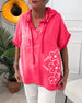Afslappet hættetrøje med korte ærmer og blomsterprint