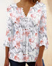 SPECIFIKATIONER Top type: Bluser Stil: Afslappet Materiale: Bomuldsblanding Lejlighed: Daglig Halsudskæring: V-udskæring Mønstertype: Tryk Ærmetype: Vidærmet Ærmelængde: Trekvartærmet Pasform: Almindelig Sæson/årstid: Forår,Sommer Detaljer: Pjusket Pakken inkluderer: 1 x Bluse STØRRELSESTABEL (cm) Størrelse Buste Længde S 97 68 M 101 69....