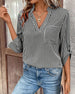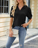 Top Leopard V-hals Stumpearbejde Lang Ærme