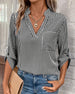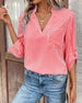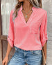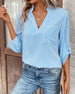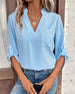 Ensfarvet Enkel V-Hals Bluse Med Elegant Udtryk