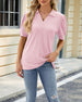 SPECIFIKATIONER Top type: Toppe Stil: Afslappet Materiale: Bomuldsblanding Lejlighed: Daglig Halsudskæring: Revers Mønstertype: Ensfarvet Ærmetype: Puf-ærmer Ærmelængde: Kortærmet Pasform: Almindelig Sæson/årstid: Forår, Sommer, Efterår Pakken inkluderer: 1 x Top STØRRELSESTABEL (cm) Størrelse Buste Længde Ærmer S 95 69 27 M ...