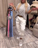 Stilfulde ensfarvede bukser med lommer og tværgående design