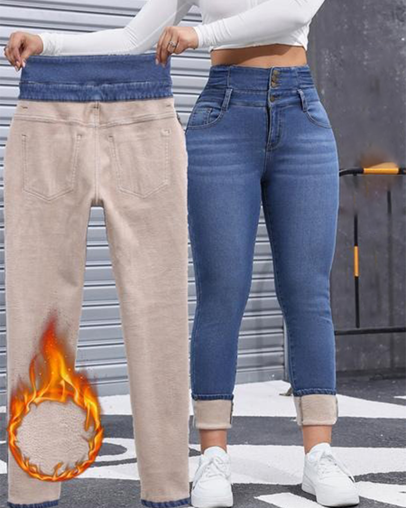 Ensfarvede Stretch-Skinnybukser