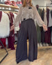 Højtaljede pailletdekorerede bukser med brede ben og plissering