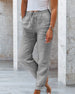 SPECIFIKATIONER Stil: Afslappet Materiale: 70%Bomuld,30%Linned Mønstertype: Ensfarvet Buksetype: Lige ben Bukselængde: Lang Taljetype: Mellem talje Pasform: Almindelig Sæson/årstid: Forår, Sommer, Efterår Detaljer: Lomme, Snøre Lejlighed: Daglig Pakken inkluderer: Bukser STØRRELSESTABEL (cm) Størrelse Talje Længde Hofte S 68 9...