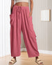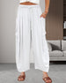 SPECIFIKATIONER Stil: Afslappet Materiale: Bomuld og hør Mønstertype: Ensfarvet Buksetype: Brede ben Bukselængde: Lang Taljetype: Høj talje Pasform: Almindelig Sæson/årstid: Forår, Sommer, Efterår Detaljer: Lomme, Udhulende, Snøre Lejlighed: Daglig Pakken inkluderer: Bukser STØRRELSESTABEL (cm) Størrelse Talje Længde S 67 99 M 72 10...
