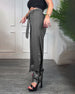 Højtaljede pailletdekorerede bukser med brede ben og plissering