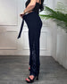 Jumpsuit med V-udskæring og tilspidset elastisk talje
