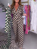 SPECIFIKATIONER Stil: Chic Materiale: Bomuldsblanding Mønstertype: Geometrisk tryk Halsudskæring: V-udskæring Ærmetype: Almindeligt ærme Ærmelængde: Langærmet Buksetype: Brede ben Bukselængde: Lang Pasform: Almindelig Sæson/årstid: Forår, Sommer Detaljer: Lomme, Snøre op Lejlighed: Daglig Pakken inkluderer: 1 x Jumpsuits STØRRELSESTABEL (c...