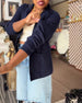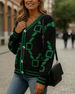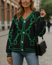 Lang cardiganjakke med bogstavtryk i løs pasform