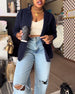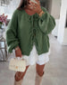 Ensfarvet Hætte Enkeltknappet Cardigan