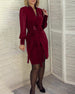 SPECIFIKATIONER Stil: Elegant Materiale: 100% Polyester Kjoletype: A-linje Kjolelængde: Knælængde Halsudskæring: V-udskæring Mønstertype: Ensfarvet Ærmetype: Almindeligt ærme Ærmelængde: Langærmet Pasform: Almindelig Sæson/årstid: Efterår, Vinter Lejlighed: Daglig, Ferie Pakken inkluderer: 1 x Kjole STØRRELSESTABEL (cm) Størrels...