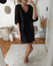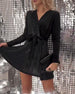 SPECIFIKATIONER Stil: Fest Materiale: Bomuldsblanding Kjoletype: A-linje Kjolelængde: Over knæet Halsudskæring: V-udskæring Mønstertype: Pailletter Ærmetype: Almindeligt ærme Ærmelængde: Langærmet Detaljer: Rygløs,Sløjfeknude Pasform: Almindelig Sæson/årstid: Efterår,Vinter Lejlighed: Daglig,Fest Pakken inkluderer: 1 x Kjole STØRRELSESTABEL (c...